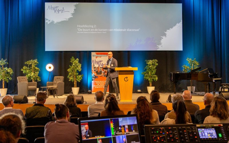 Mark Zeldenrust, wijkpastor in Almere Poort, deelde ’s middags in de tweede hoofdlezing zijn visie op en ervaring met het toepassen van missionair diaconaat in de wijk. Mark Zeldenrust: “Barmhartigheid of evangelisatie. Het is juist onlosmakelijk aan elkaar verbonden. De hele Bijbel staat vol met recht doen aan de kwetsbaren.”