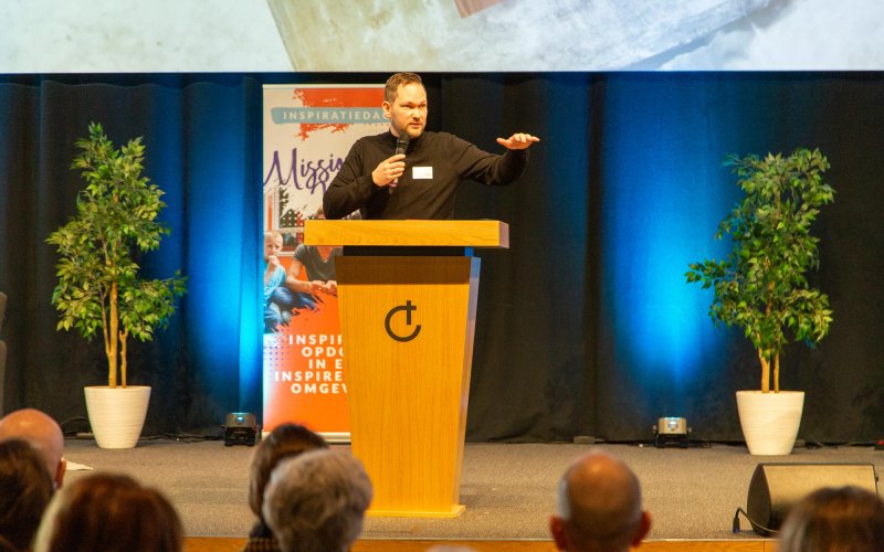 Mark Zeldenrust, wijkpastor in Almere Poort, deelde ’s middags in de tweede hoofdlezing zijn visie op en ervaring met het toepassen van missionair diaconaat in de wijk. Mark Zeldenrust: “Barmhartigheid of evangelisatie. Het is juist onlosmakelijk aan elkaar verbonden. De hele Bijbel staat vol met recht doen aan de kwetsbaren.”