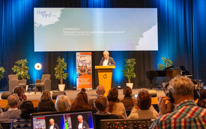 De eerste hoofdlezing door ds. Paul Visser nam de deelnemers mee naar ‘De kracht van het Evangelie in een seculiere context.’ Ds. Visser: “Bekering kan snel gaan. Dat fietst door al onze theorieën heen en dat is maar goed ook. Dat is het Evangelie. En dit is een boodschap waar ik me niet voor schaam.”